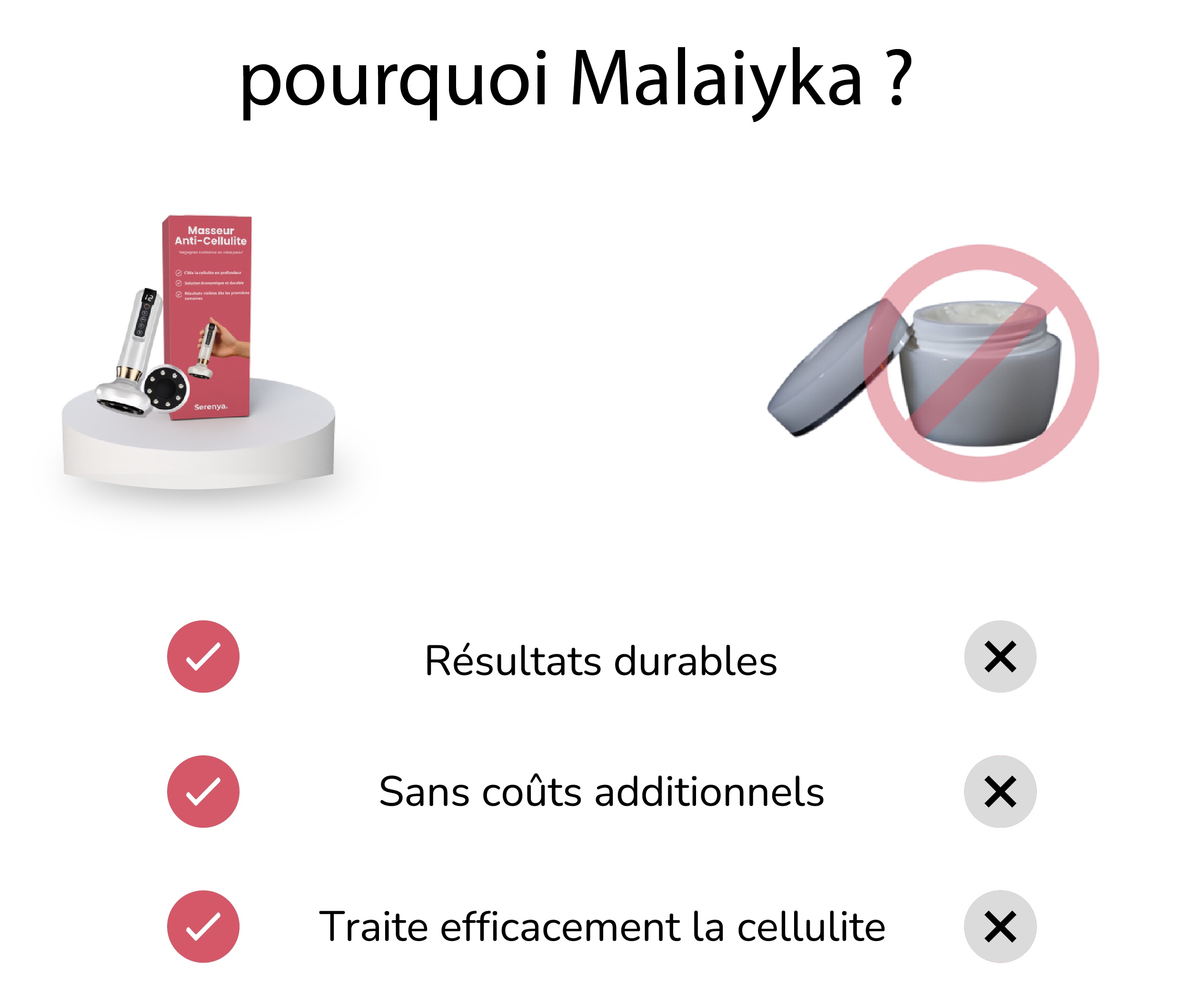 "Basé sur les avis de plus de 6,500 femmes ayant essayé le masseur anti-cellulite Malaiyca"