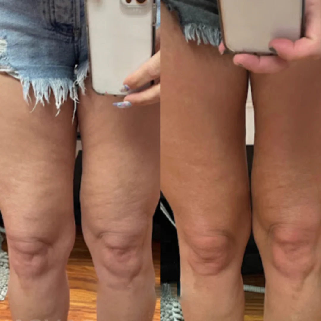 Le résultat ? Une peau visiblement plus lisse, ferme et tonifiée, avec une réduction notable de la cellulite, de la peau relâchée, des zones affaissées et des vergetures – le tout depuis le confort de votre maison.